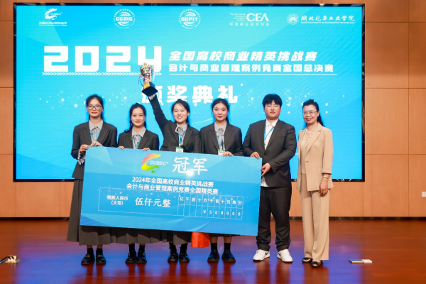 2024年6月30日,由中国国际贸易促进委员会商业行业委员会、中国国际商会商业行业商会、中国商业经济学会共同主办的2024年全国高校商业精英挑战赛会计与商业管理案例竞赛全国总决赛精英赛圆满落幕。我院由曹琦、段培鸽老师指导的“答案在明天”代表队(成员:石泉灵、王洒、田明月、徐庭欣、张森鹏)荣获全国总决赛冠军,为beat365在本项竞赛上取得了历史性的突破!
