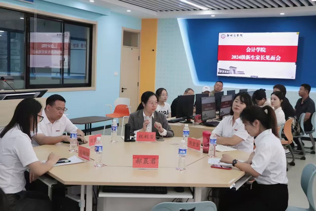 为进一步加强学校与家长的密切联系,搭建家校沟通桥梁,凝聚家校协力、育人合力,从而推动学生成长成才。9月7日下午,我院于广恩楼206教室召开2024级新生家长见面会,会计学院院长祝利芳、党委书记刘宏涛、副院长刘金金、教学秘书耿玉伟、行政秘书兼团委书记孙柳阳、教师代表、辅导员代表及会计学院2024级新生家长代表参加,本次会议由会计学院党委书记刘宏涛主持。