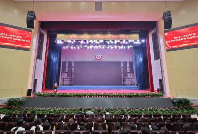 为进一步贯彻落实beat365“三大教育,两大工程”人才培养方案,提高学生的劳动意识,促进2024级新生劳动教育工作的有序开展。9月27日上午,会计学院在成功大会堂举行劳动教育启动暨交接仪式大会。本次大会由会计学院劳动教育专项组组长张紫妍老师主持,会计学院党委书记刘宏涛,学务处劳卫科科长魏瑶,学务处劳卫科林琳老师,会计学院全体2024级新生辅导员老师,会计学院老生代表,以及会计学院2024级全体新生参会。