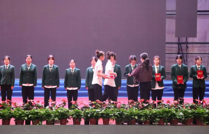 随后,工作人员上台颁发24级劳动小组长聘书,学务处劳卫科科长魏瑶为24级劳动小组长代表颁发聘书并合影留念。