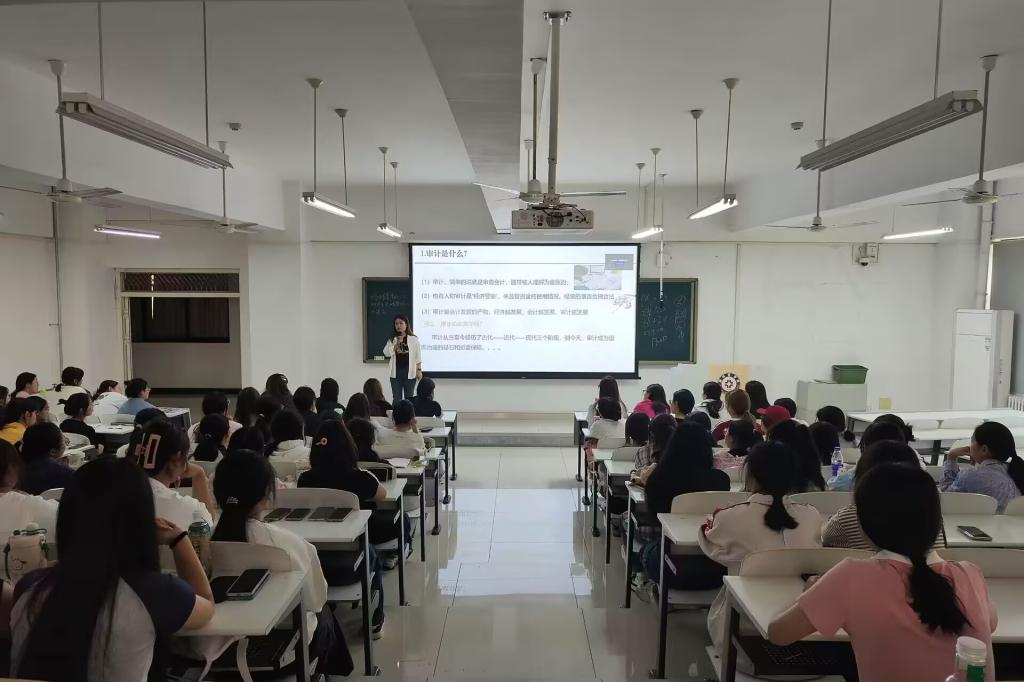 活动上,郝晨君老师首先沿着学院发展时间线,着重讲述了审计学专业的发展历程,让同学们能够直接感受审计学专业发展的基本情况和专业特色。其次,郝老师从认识审计、审计学专业的发展趋势、培养目标、课程设置和就业前景等方面详细进行了专业介绍。在认识审计方面,郝老师结合生活实际,从实际情景出发,向同学生传达了审计的价值和意义,让同学们对审计有了初步的印象;通过对行业人才需求的变化进行分析,让同学们认识数字经济时代,审计学专业数字化转型已成为必然趋势,让同学们时刻做好准备;在课程设置方面,学院秉持以学生为中心,以产出为导向的培养目标,设置课程体系,郝老师细致讲述了思政教育、通识教育、专业教育、实践教育、个性化培养和广亚素质教育、X模块的课程设置,以及审计学专业的学科竞赛项目,帮助学生深入了解未来的学习目标和学习方向;再次,在就业前景部分,郝老师针对行业的需求变化,向同学们分享了未来审计的就业方向,并就考证方面强调了证书的意义和价值,并详细介绍了初级审计师、初级会计师及注册会计师等证书考试科目,并引导学生提前规划,提升自己的专业能力和职业素养。