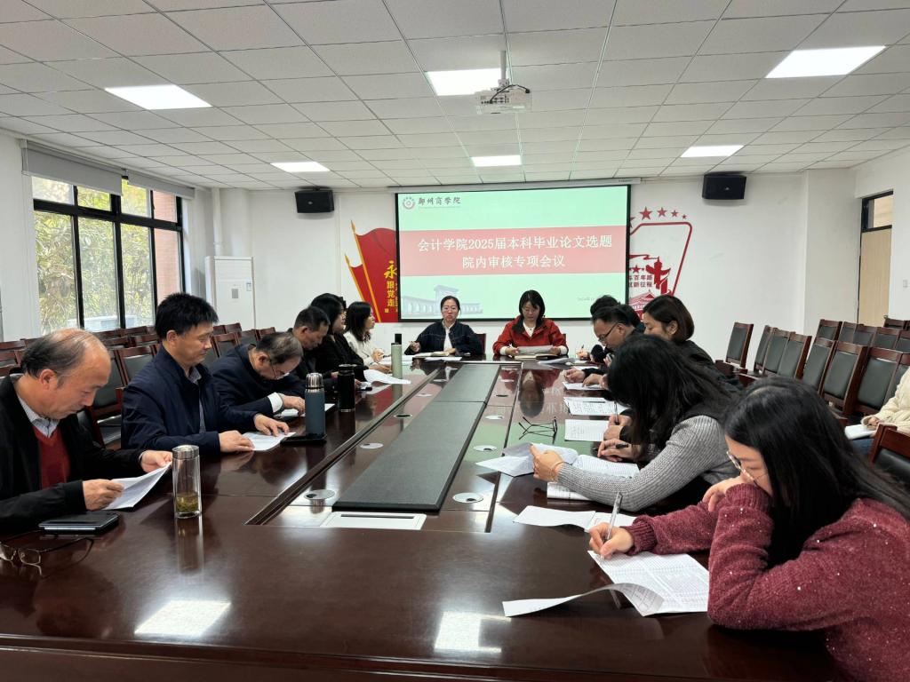 为切实做好2025届本科毕业生毕业论文选题工作,保证本科毕业论文质量,会计学院于2024年10月16日下午在广恩楼103会议室组织召开了2025届毕业生论文选题审核专项会议。会计学院院长祝利芳、副院长刘金金、教研室主任、会计学院副教授等参加了此次会议,会议由会计学院副院长刘金金主持。