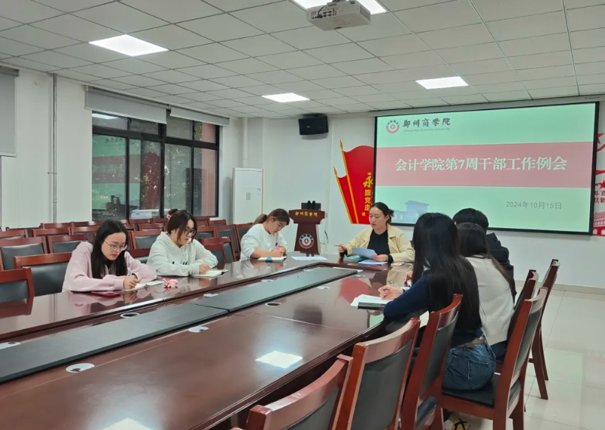 为了进一步加强学生会的组织建设,提升学生干部的工作能力和服务水平,10月15日晚,我院于广恩楼103会议室组织召开第七周学生干部工作例会,本次会议由行政秘书兼团委书记孙柳阳主持召开,会计学院全体学生干部参加。