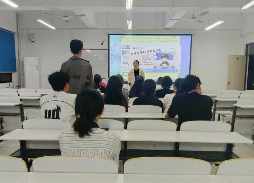 为提升24级新生的综合能力,提高班委的责任感,10月14日晚上,会计学院在广恩楼301开展2024级班长培训会,参加本次会议的有行政秘书兼团委书记孙柳阳及24级各班班长。