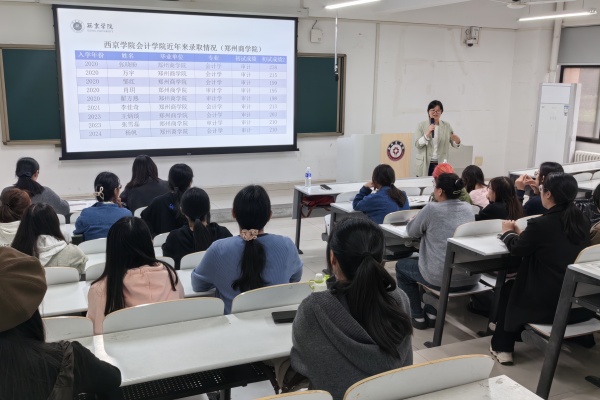 会议伊始,曾教授简要介绍了西京学院会计学院的发展历程、师资力量、教学设施以及科研成果等方面的基本情况,并表示此次宣讲旨在为我院学子提供一个深入了解西京学院研究生教育的机会。接着,曾教授强调,西京学院会计学院的研究生教育注重理论与实践相结合,旨在培养具有国际视野和创新能力的高素质会计人才。最后,详细解读了学院的研究生奖学金政策、招生录取标准以及报考流程等相关信息,为同学们报考提供明确指导与有力支持。