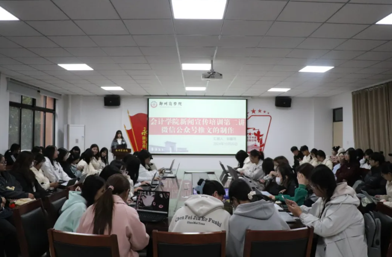 为进一步提高新媒体中心工作人员的专业素养,提高个人综合能力,加强学院宣传队伍的工作能力。10月20日下午,会计学院新媒体中心全体成员于广恩楼103会议室召开了新闻宣传培训第二讲——微信公众号推文的制作。