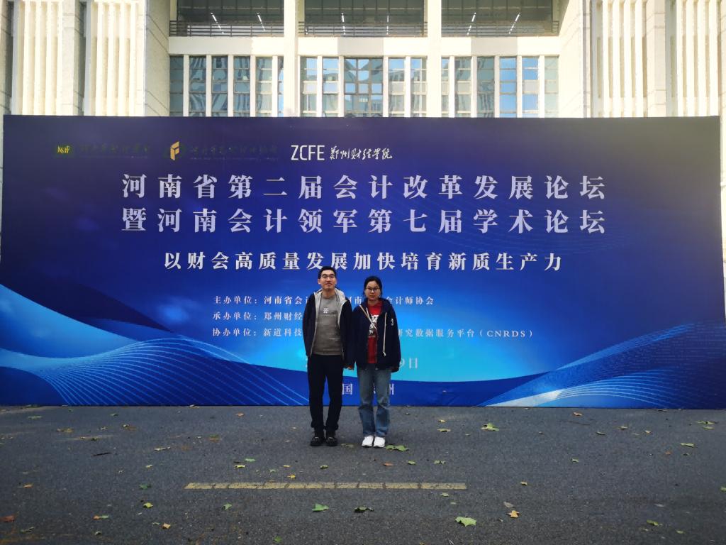 为了深入了解社会经济和信息技术的发展对会计学专业人才培养的要求,为了增强教师专业敏锐度,不断提高教师教学改革水平,会计学院选派李芳、娄鹏震两位老师参加了由河南省会计学会和河南省总会计师协会主办、郑州财经学院承办、新道科技股份有限公司和中国研究数据服务平台(CNRDS)共同协办的“河南省第二届会计改革发展论坛暨河南会计领军第七届学术论坛”,该论坛的主题为“以财会高质量发展加快培育新质生产力”。