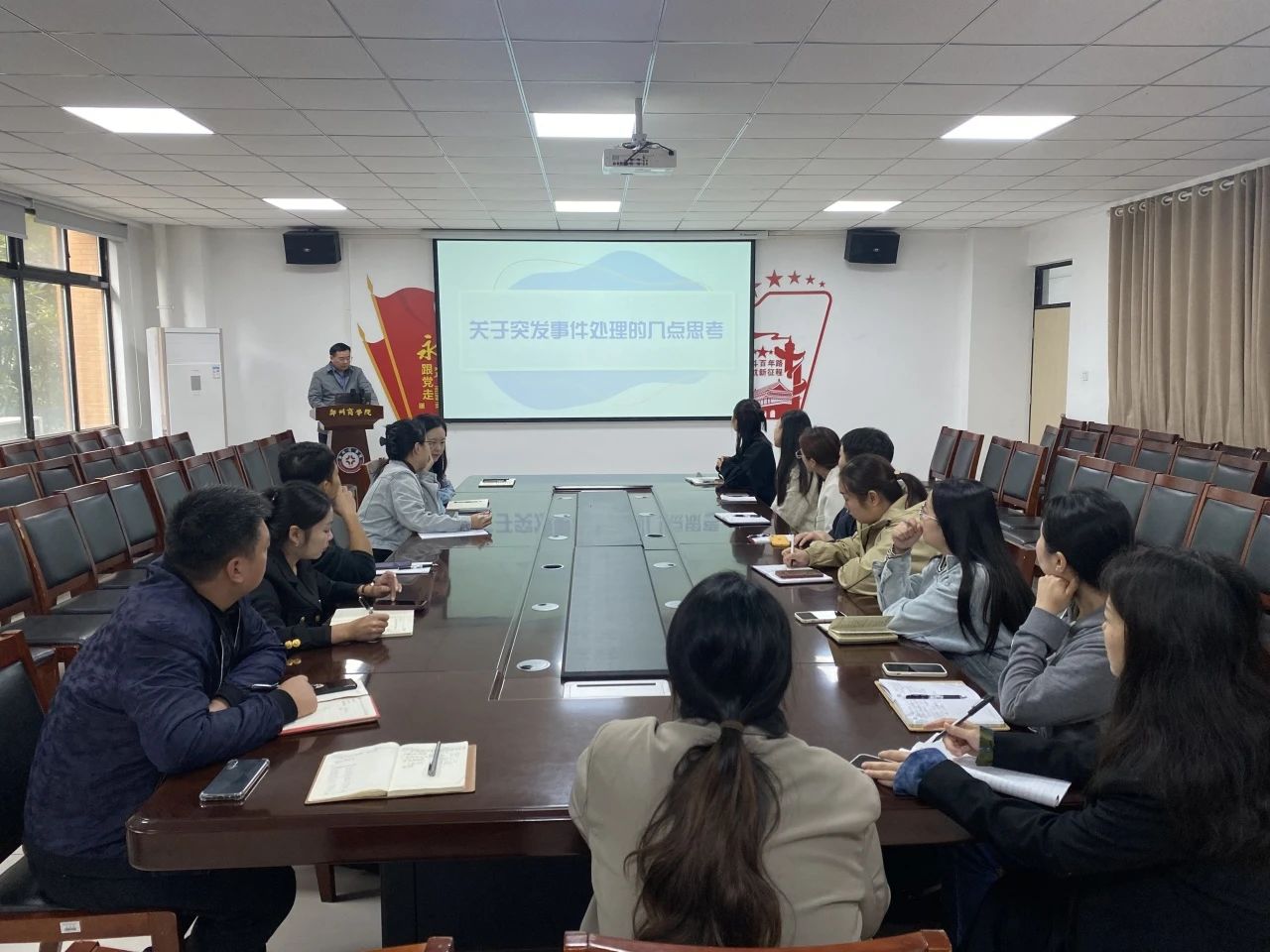 最后,刘书记分享了关于突发事件处理的几点思考,他指出:要深入了解学生的实际情况和需求,制定个性化的辅导方案,通过保持冷静、及时沟通、以人为本和总结经验等策略,提升突发事件的处理能力。