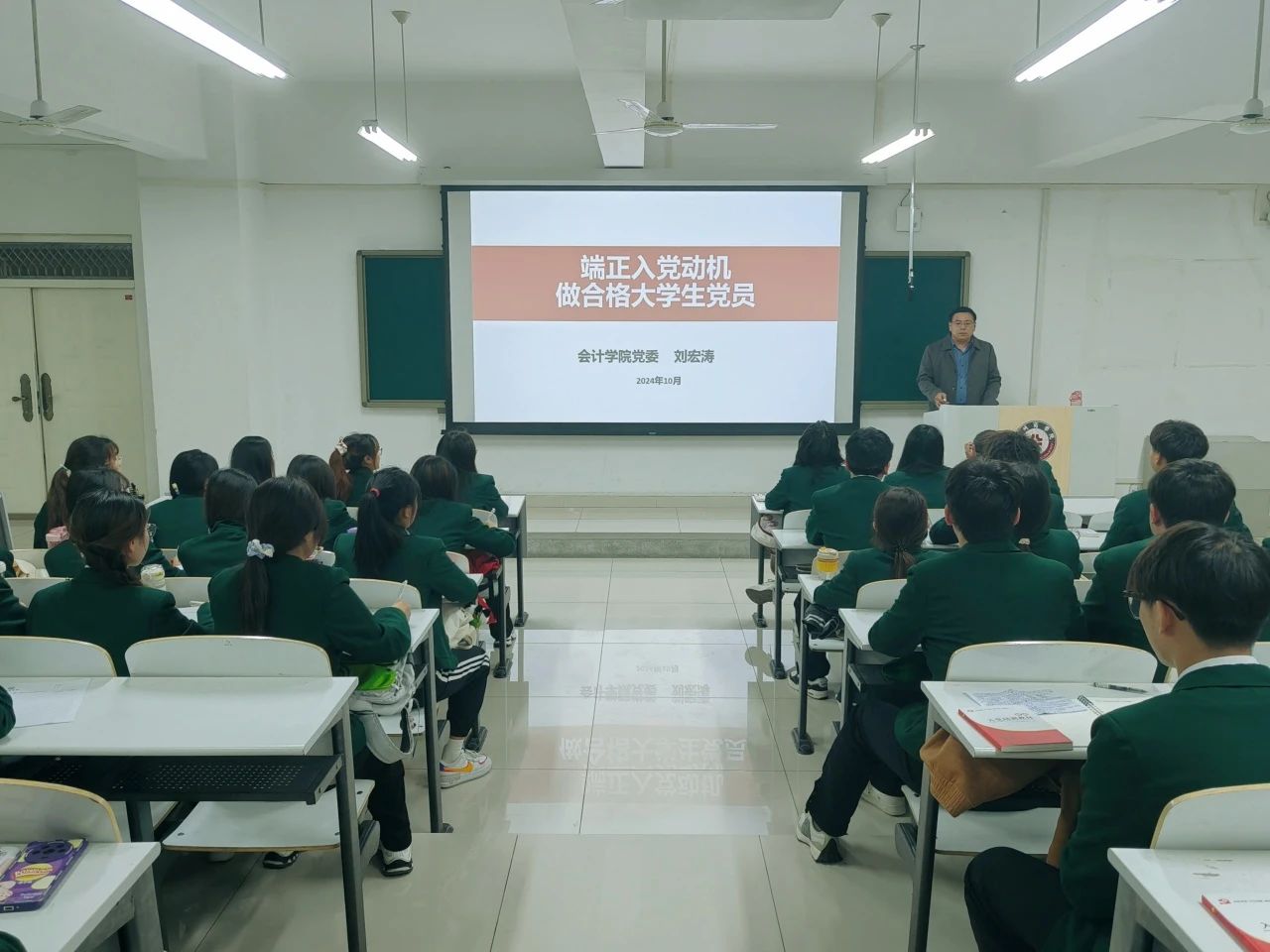 为进一步加强积极分子的思想教育,引导学生树立正确的入党动机,10月28日,会计学院在广恩楼104教室开展第39期入党积极分子党课第五讲,此次党课由会计学院党委书记刘宏涛授课。