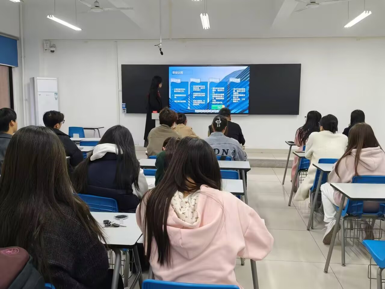参赛选手们的表现令人印象深刻。他们借助PPT展示与演讲,深入剖析自身优势与劣势,规划书精心制定了具体职业目标与发展路径,还提出了切实可行的实现目标措施,展示出了对未来职业的清晰规划和全面思考。