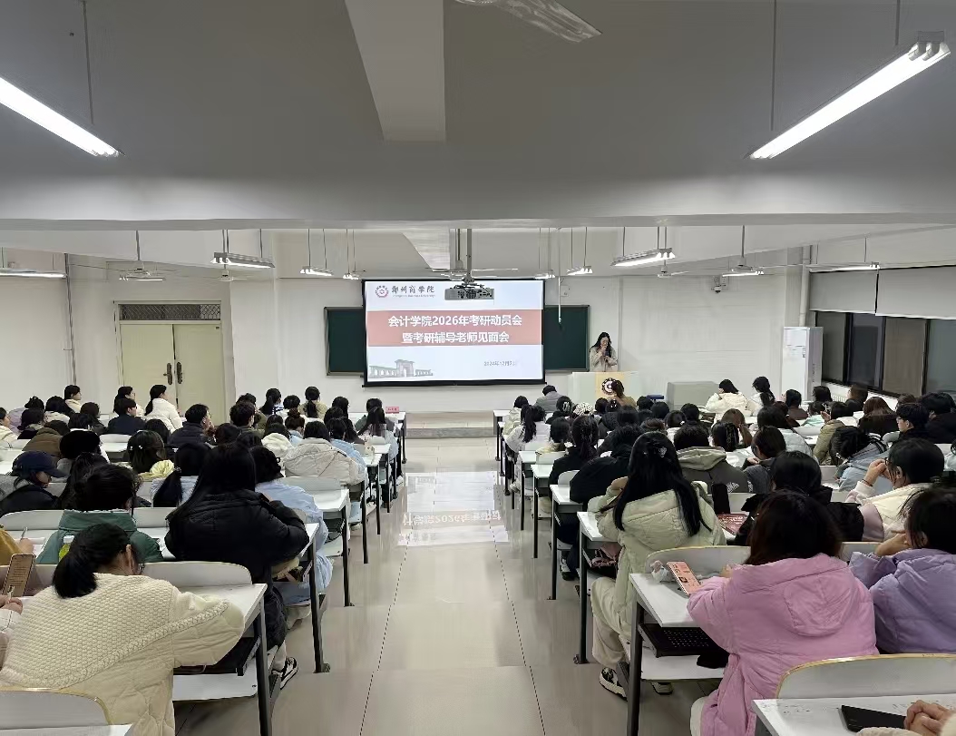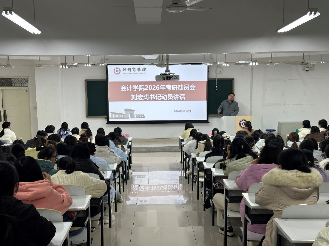 为了充分调动学生考研的积极性,明确其考研目标与规划,为学生提供有力的备考支持,会计学院于12月2日晚,在广恩楼104教室召开了2026年考研动员会暨考研辅导老师见面会。会计学院党委书记刘宏涛、副院长刘金金、全体考研教研室教师以及2026年全体考研学子参加了本次会议。会议由考研教研室老师金晨阳主持。