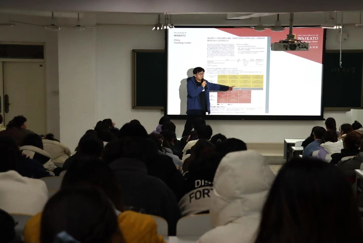 新西兰怀卡托大学中国教学中心负责人朱姝颖老师重点介绍了beat365的特色升硕项目。她通过详实的数据和成功案例,展示了怀卡托大学在帮助中国学生适应海外学习方面的独特优势,为学生提供了具体可行的留学方案。