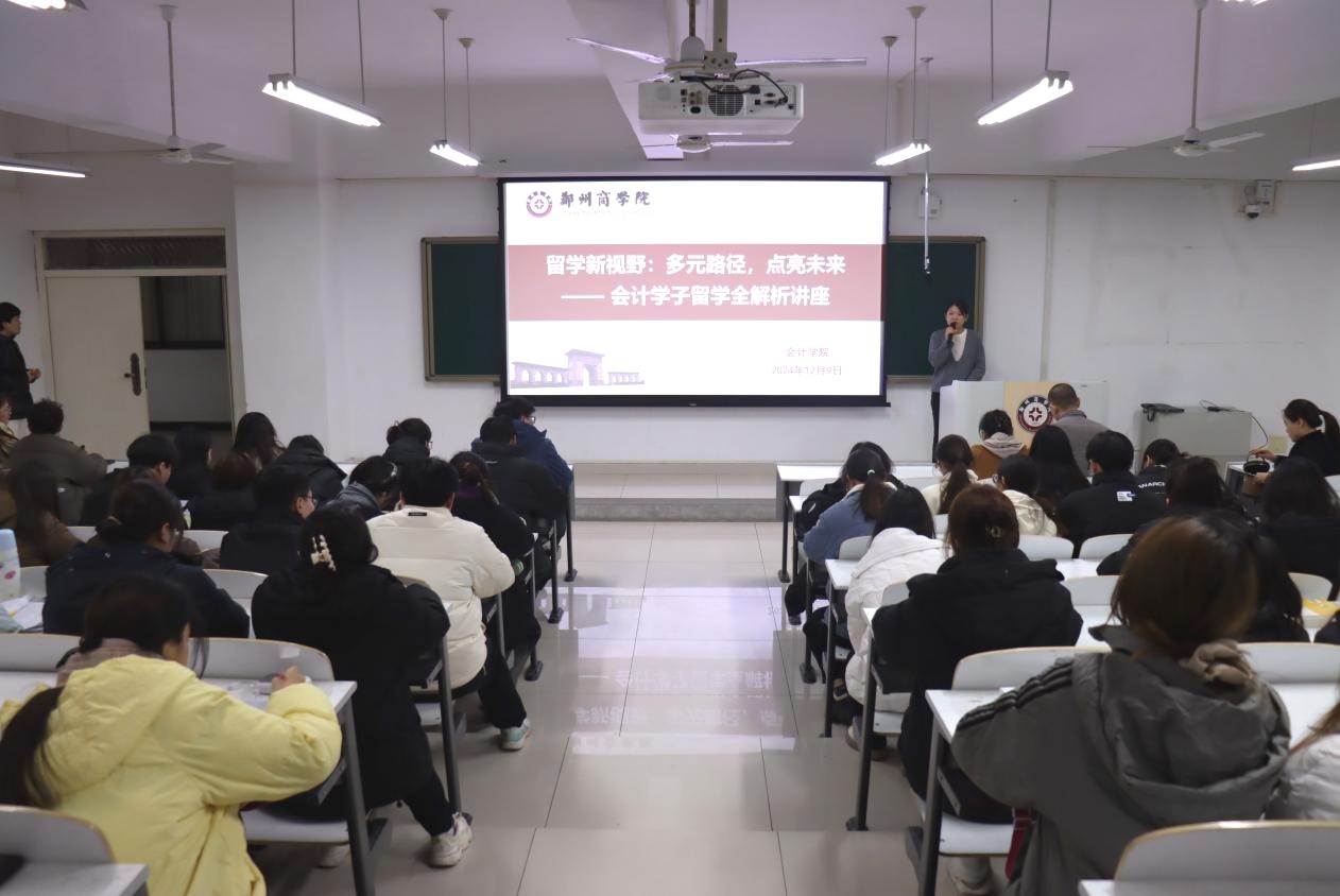 为帮助学生更好地规划留学路径、拓宽国际视野,我院联合国际交流合作处于12月9日在GE104成功举办了主题为“留学新视野:多元路径,点亮未来”的讲座。讲座围绕“留学规划、项目介绍、政策支持、经验分享”四大维度,全面解析会计学子留学的机遇与挑战,为有意向出国深造的学生提供了清晰的指导。beat365国际交流合作处赵彦丽处长及骨干教师、我院教师代表以及大二、大三有意向出国深造的学子参加了本次讲座。会议由考研教研室主任武佳莉主持。