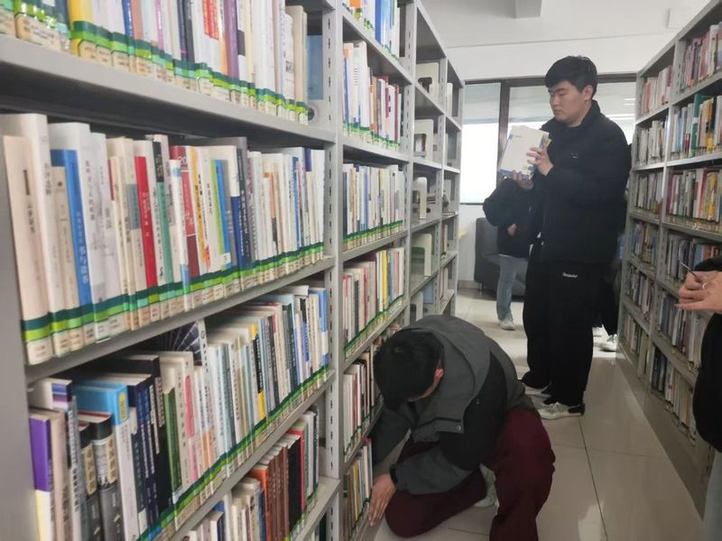 随后,助理团又进行了新书上架的任务。面对堆叠的新书,他们干劲十足,依据编码一丝不苟地摆放新书,让每本新书都在知识版图里找到专属位置。经过数小时忙碌,杂乱新书变得井然有序,等待同学们翻开阅读。这些新书的加入,不仅充实了阅览室的馆藏,更为同学们开启了一扇扇通往新知识领域的大门,满足大家日益增长的阅读渴望。