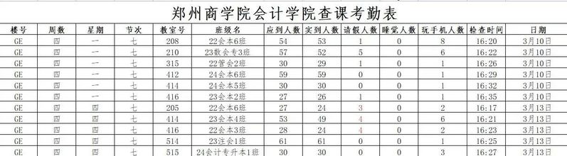 为保证同学们的听课质量,提高自律意识,学生干部在上课期间对各教室进行巡查,对于上课玩手机、睡觉、交头接耳等不良现象,督查人员会及时提醒并记录。从督查情况来看,多数教师采用多样化教学方法激发学生兴趣,课堂互动良好,同学们学习积极性较高,但仍有部分同学存在注意力不集中的问题。针对这些情况,学院将加强教育引导,帮助学生认识到课堂学习的重要性,端正学习态度。