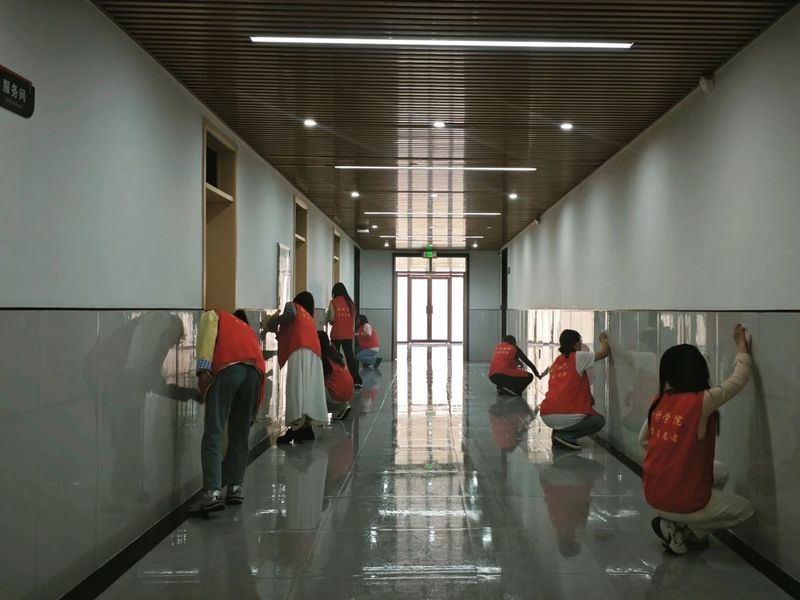 本次活动重点聚焦于宿舍内务的打扫与整理,活动期间,学生认真听从辅导员安排,自觉遵守纪律,分工明确,相互协作,分别对公共区域和宿舍的门窗、墙面、桌面等角落进行了全方位清理,确保不留任何死角。在打扫过程中,学生们展现出了高度的责任感和良好的精神风貌,经过全体学生的一番努力,室内环境更加整洁明亮,门窗焕然一新,宿舍环境得到了显著改善。