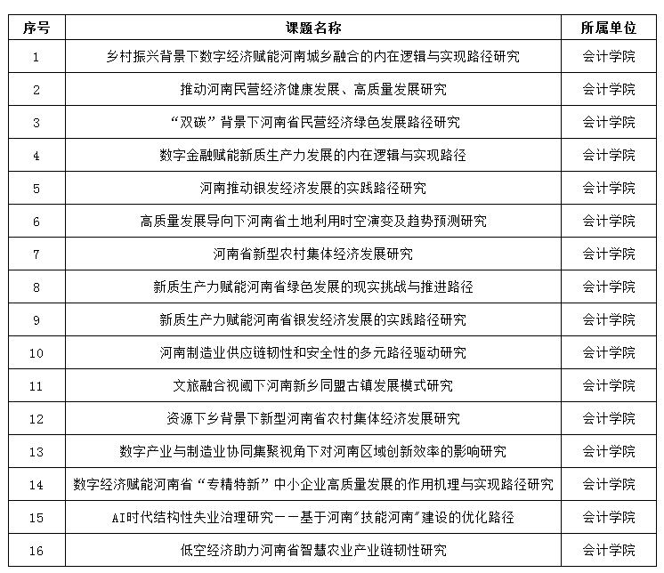 经会计学院科研项目评审审查推荐小组对申报人员申报书评审、论证、表决后,共推荐16人参与2025年度河南省社科联调研课题申报,名单如下:
