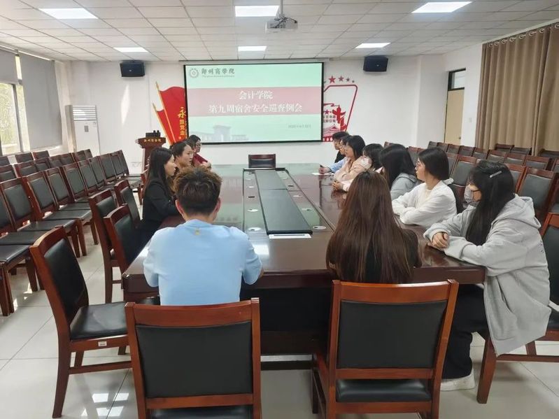 为进一步强化安全管理,及时发现并消除各类安全隐患,为师生打造更加安稳的学习生活环境。4月18日,会计学院于广恩楼103会议室召开了第九周宿舍安全巡查例会。本次会议由会计学院行政秘书兼团委书记孙柳阳主持,值班教师与巡查学生骨干共同参与。