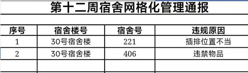 以下为本周例行检查结果,希望以下宿舍相关同学遵守相关规定,及时调整,共同构建和谐文明宿舍。