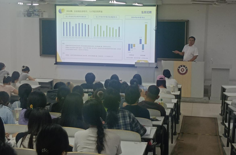刘宏涛书记首先对即将踏入实习岗位的同学们表示殷切关怀与深切期望。他结合当前就业形势,深入阐述了实习实训对毕业生成长发展的重要意义。“实习不仅是理论知识的实践检验场,更是大家接触社会、积累职场经验的关键契机。”刘书记强调,实习经历将直接影响未来职业发展的起点和方向,鼓励同学们要以高度的责任感和使命感对待此次实习。然后,刘书记结合自身工作经验和学院往届学生的实际案例,对2026届毕业生逐一给予细致解答和实用建议。他鼓励同学们遇到困难及时与学院沟通,学院永远是大家坚实的后盾。