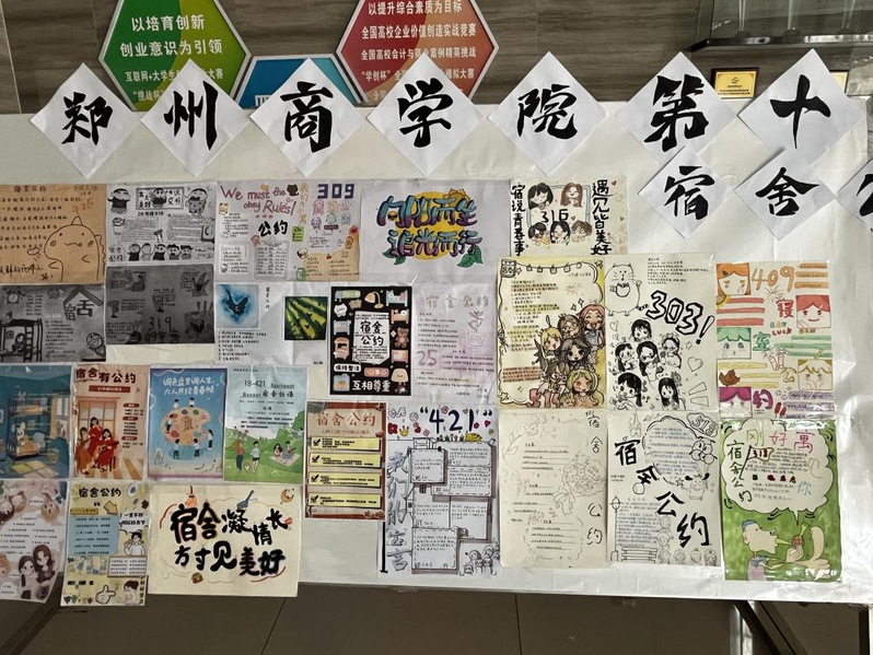 为切实提高同学们的文明礼仪素养,着力营造文明和谐、积极向上的宿舍氛围,挖掘优秀寝室文化与内涵,倡导健康生活,促进各宿舍成员团结进步。5月19日,由学务处主办,会计学院承办的第十一届宿舍文化节——宿舍公约、标语大赛已圆满结束,并于广恩楼一楼大厅对各学院的优秀作品进行集中展示。