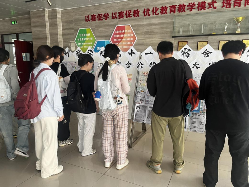 自大赛开展以来,学生们热情高涨,积极响应学校号召,围绕宿舍礼仪、卫生、安全与团结互助等核心要点,精心构思并制定出详尽且实用的宿舍礼仪公约。参赛作品亮点纷呈内容上涵盖从日常作息的礼貌规范到公共区域的卫生维护、从用电安全的严格遵守到舍友间的互帮互助,条理清晰又注重细节。一张张精美的公约和创意十足的标语、充分展现出学生们团结协作的精神与朝气蓬勃的活力。