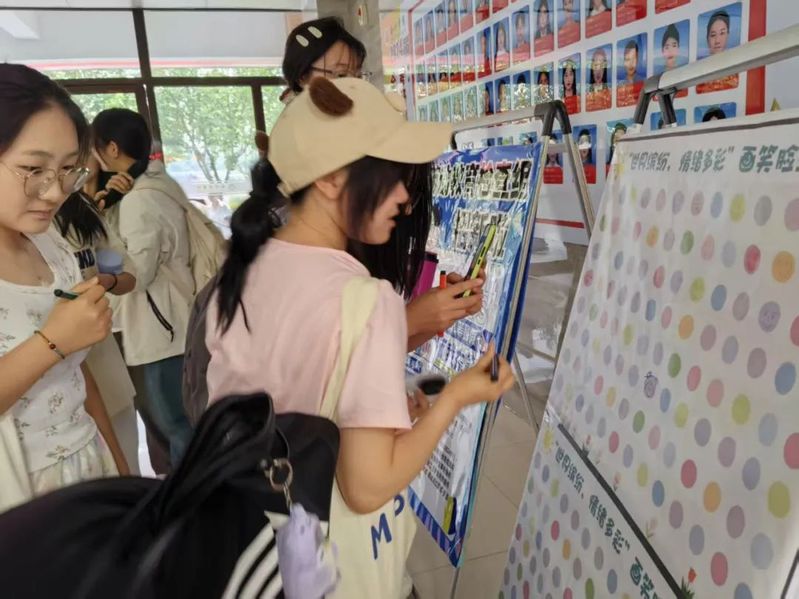 活动伊始,心理老师先为大家讲解了心理健康的重要性、常见心理问题的表现及应对方法,让同学们有更加深入的认识和了解。之后在老师和管理人员的介绍下,同学们纷纷在画板前驻足,选择自己心意的颜色进行创作,画出了各种各样的笑脸,这些各具特色的作品,正是同学们内心真挚情感的流露。同学们也被现场的氛围感染,脸上绽放出灿烂的笑容。