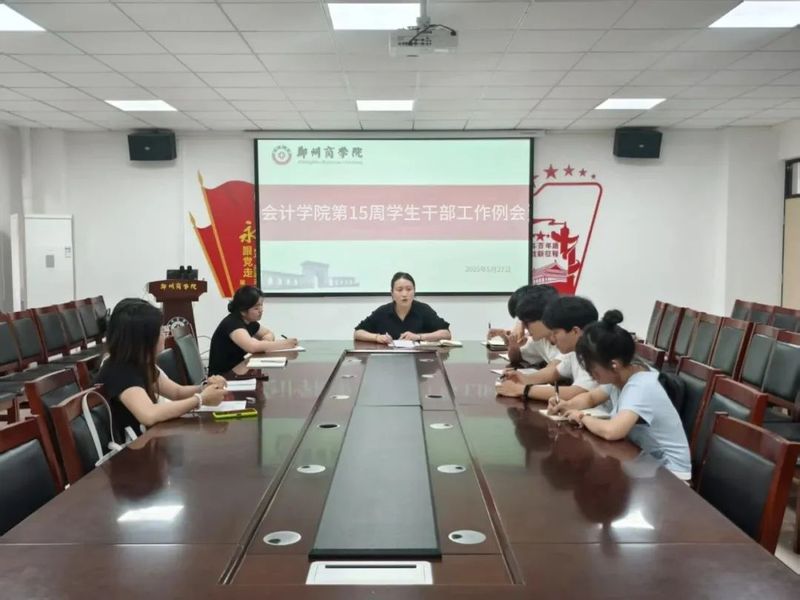 为了进一步提升学生教育管理与服务水平,总结学生工作阶段性成果,明确学生工作方向和目标,确保各项学生工作稳健、高效、有序展开,我院于5月27日下午在广恩楼103会议室组织召开第十五周学生干部工作例会。本次会议由会计学院行政秘书兼团委书记孙柳阳老师主持,全体学生干部参会。