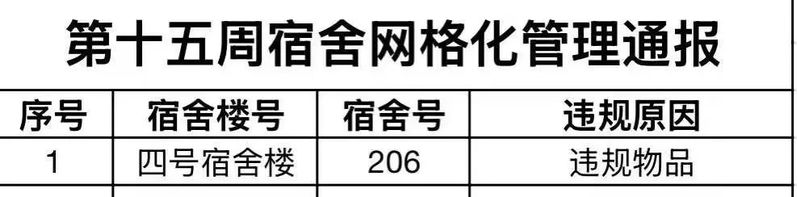 以下为本周例行检查结果,希望以下宿舍相关同学遵守相关规定,及时调整,共同构建和谐文明宿舍。