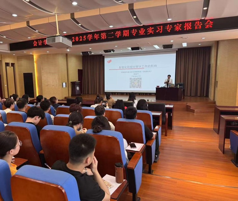 为助力师生紧跟审计行业前沿趋势,深化专业认知,会计学院还邀请河南富平会计师事务所刘福平所长莅校为22级审计学专业的学生开展《数智化转型对审计工作的影响》的专题报告。讲座聚焦当下社会向数智化转型的必然趋势以及数智化转型对审计工作产生的影响,让在场师生对数智化浪潮有了更清晰的认识。随后,针对如何培养审计人员的职场能力,刘所长分享了一系列实用的方法和建议,为同学们未来的职业发展提供了宝贵参考。