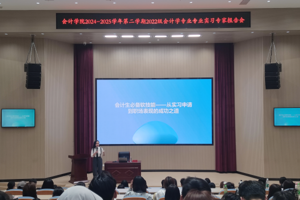 报告会上,专家聚焦“数智化背景下会计专业发展趋势及应对”、“会计生必备软技能”以及“税收在国家治理中的重要作用”等主题,为学生们开展了一场又一场精彩的报告会。专家报告会的召开让学生们了解了专业软技能在职业发展中的核心作用,为在场学生提供了极具价值的成长指南,也为学生将来在会计行业从事相关工作奠定了扎实的基础;同时,此次报告会为实习指导老师在今后实习工作中如何正确引导学生认识专业特点提供了新的启发,为我院专业实习工作提供了更多的思路。
