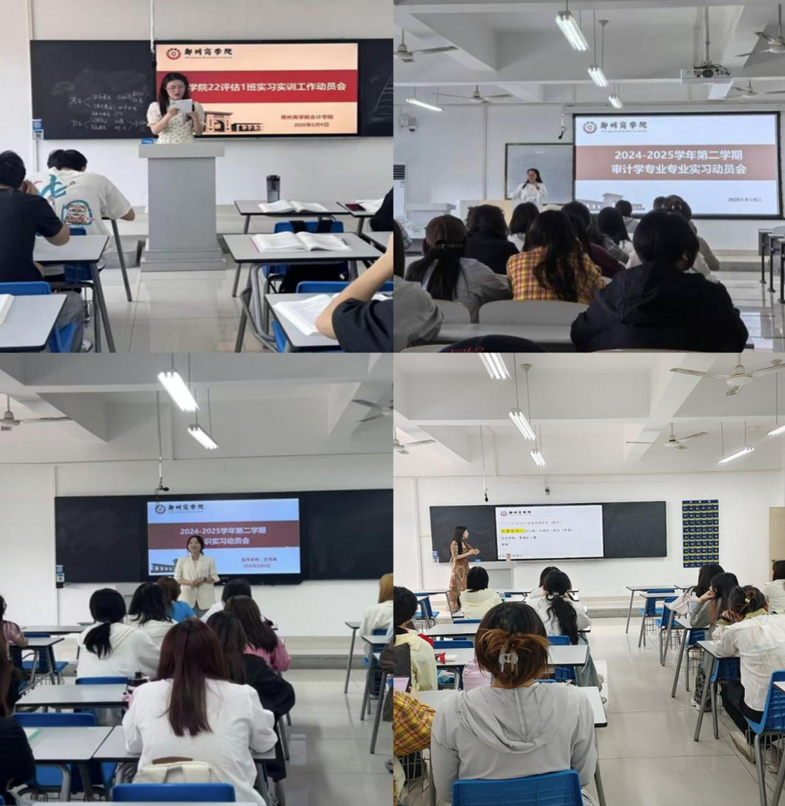会计学院本学期参加实习实训工作的班级共计21个,其中认识实习为2024级专科大数据与会计专业学生,专业实习为2022级本科会计学、会计学(注册会计师方向)、会计学(管理会计方向)、审计学、资产评估专业学生。