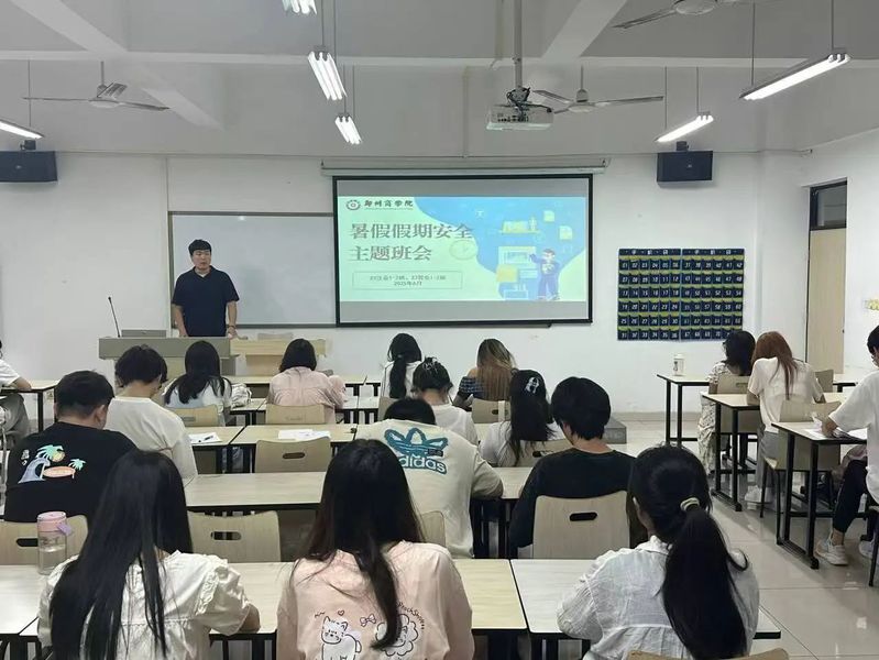 班会伊始,辅导员结合近期校园安全动态与典型真实案例,围绕交通安全、财产安全、防溺水安全等重点领域,进行安全知识宣讲。在交通安全方面,着重强调要乘坐正规运营车辆,严格遵守交通法规,坚决拒乘超载、无牌无证交通工具;财产安全环节,提醒同学们离校前妥善保管贵重物品,锁好门窗,同时提高反诈意识,切勿随意泄露个人信息;针对夏季溺水事故高发的特点,通过分析溺水事故成因与危害,告诫同学们远离陌生水域,严禁私自下水游泳。