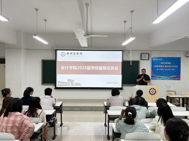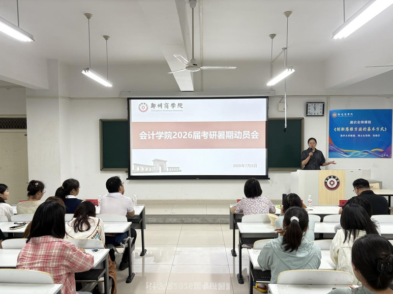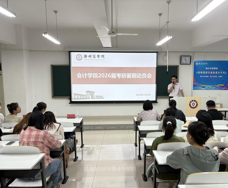 为帮助考研学子指明暑期备考方向,坚定考研信念,提振备考斗志。我院于7月3日在广恩楼104召开了2026届考研暑期动员会。会计学院院长祝利芳、党委书记刘宏涛、副院长刘金金、外语学院孙冰老师、通识教育学院彭先奎老师、会计学院教师代表、辅导员代表以及2026届考研学生参加会议。会议由考研教研室汪艳老师主持。