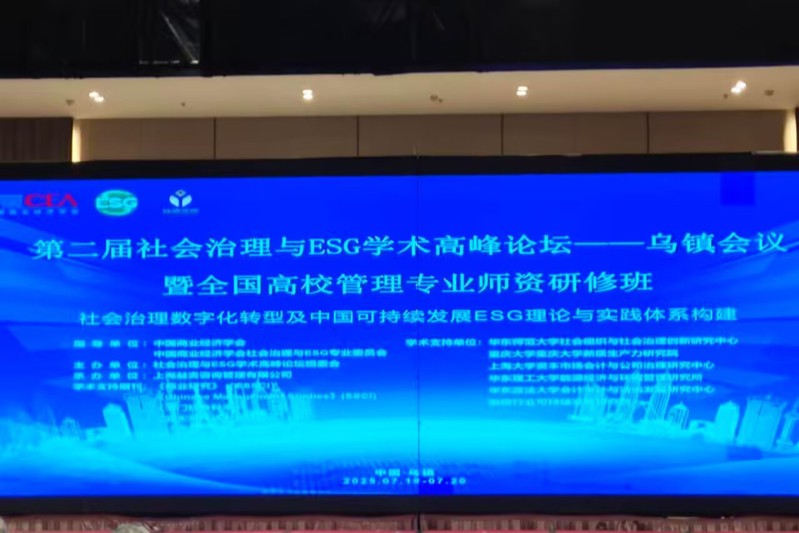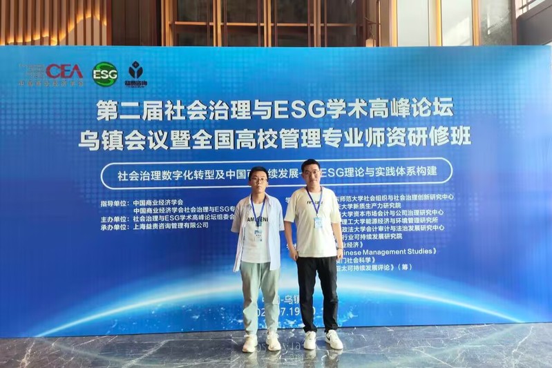 为深入探索社会治理与ESG在财会领域的创新应用,进一步提升教师专业素养与教学创新能力,2025年7月18至21日,我院选派娄鹏震、孙苌悦两位老师赴乌镇参加“第二届社会治理与ESG学术高峰论坛——乌镇会议暨全国高校管理专业师资研修班”。本研修班由中国商业经济学会社会治理与ESG专业委员会指导,社会治理与ESG学术高峰论坛组委会主办,上海益责咨询管理有限公司承办,吸引了来自学术界、企业界和社会组织的150余位专家学者、实务精英及高校师生参与,共同探讨社会治理与ESG在财会领域的前沿议题。