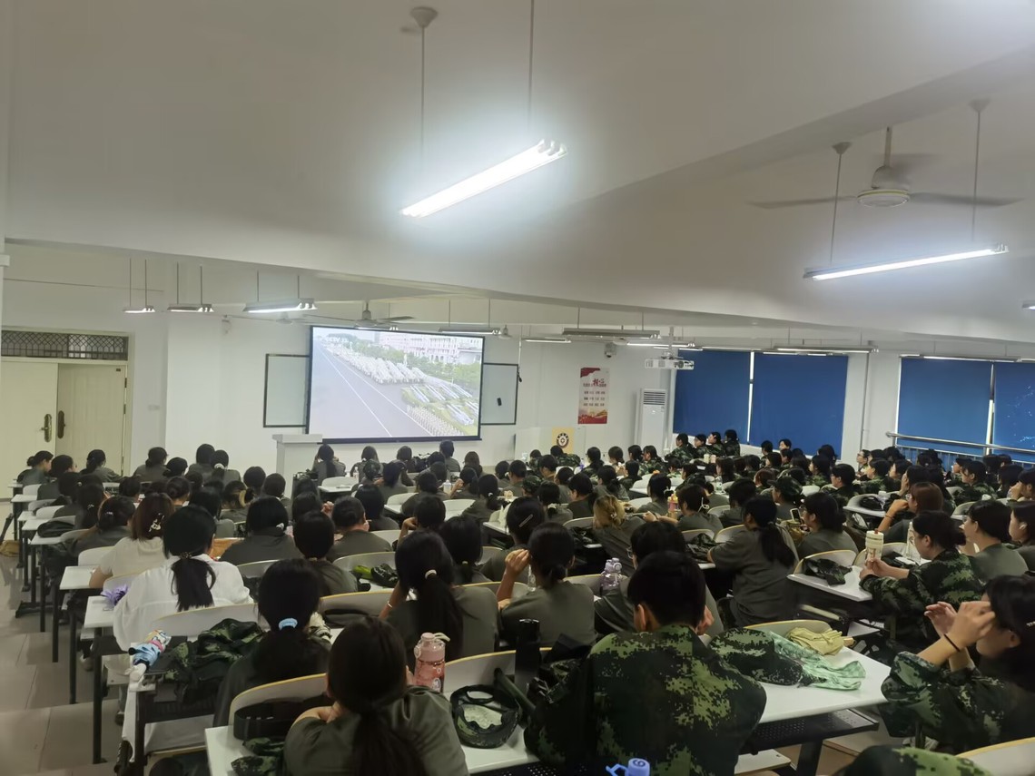 在本次活动中,新生们身穿整齐的迷彩服,眼神坚定地注视着屏幕。当激昂的国歌奏响、受阅方队迈着铿锵有力的步伐通过天安门广场时,同学们不自觉地挺直了腰杆,目光紧紧追随着屏幕上那一个个整齐划一的方阵。大家深切地感受到,阅兵不仅是对历史的铭记,更是对和平的珍视,心中的自豪感与使命感油然而生。