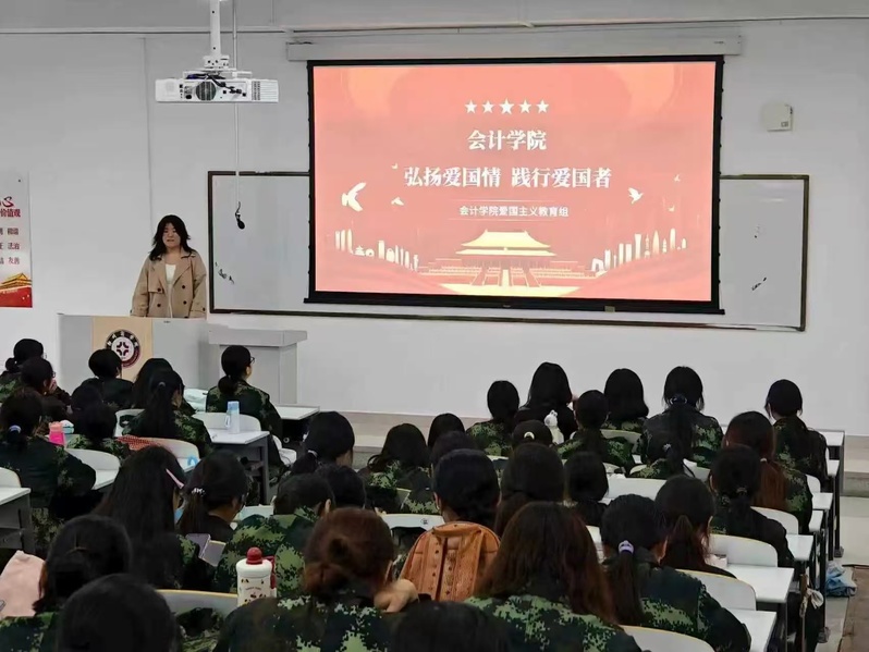 活动现场,爱国主义教育工作组宣讲成员王文俊以《中华人民共和国爱国主义教育法》为核心,结合生动案例展开宣讲。从法律正式施行的时间节点,到“总则、职责任务、实施措施、支持保障、附则”5章40条的核心框架,从涵盖思想政治、历史文化、国家象征标志的教育内容,到“将爱国主义教育纳入国民教育体系,突出青少年培养”的重点要求,逐一细致解读,并特别结合会计专业特色,分享了“以专业能力服务国家经济发展”的青年实践方向。