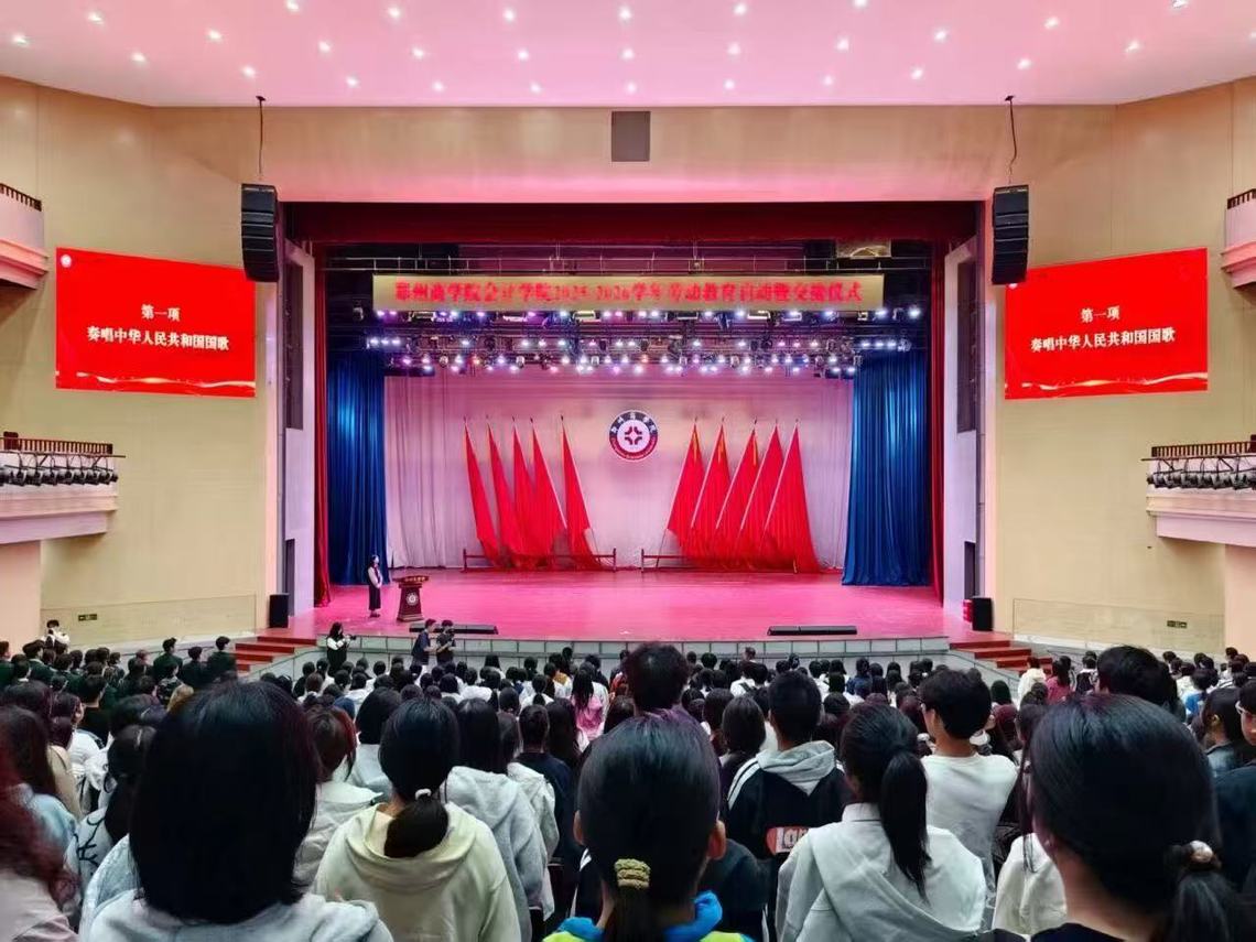 举行2025-2026学年劳动教育交接仪式。仪式中,2024级劳动委员代表将象征劳动责任的绶带传递给2025级新生代表,标志着劳动教育工作的正式交接与传承。