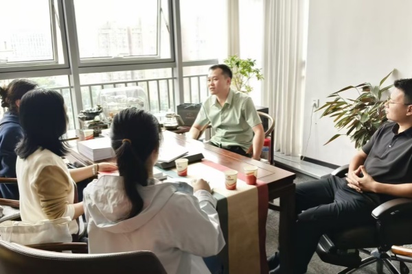 河南恒生仁财税集团有限公司副总裁樊冲和总经理刘强对我院教师的一行表示欢迎,同时对深化校企合作、产教融合以及人才需求方面进行深入交流。苗稳老师对我院专业课程设置以及人才培养成效与樊总进行介绍,随后樊总对河南恒生仁财税集团有限公司的业务板块进行介绍,李芳老师对认识实习走访、专家报告、教师赴企业实践锻炼等校企合作相关事宜与樊总展开深入探讨,达成初步意向,为我院学生的实习实训提供了高质量的平台。