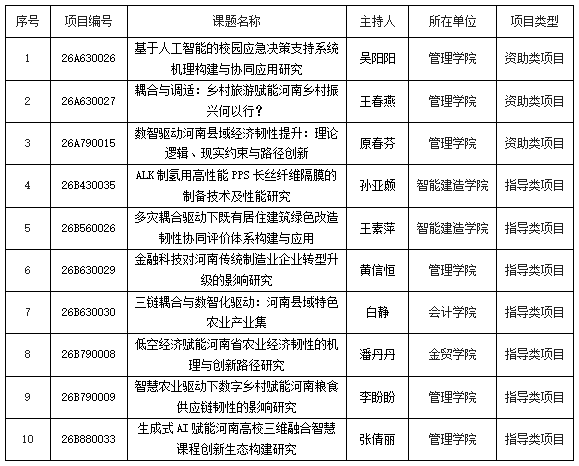 根据《河南省教育厅关于公布2026年度河南省高等学校重点科研项目计划立项名单的通知》(教科技〔...