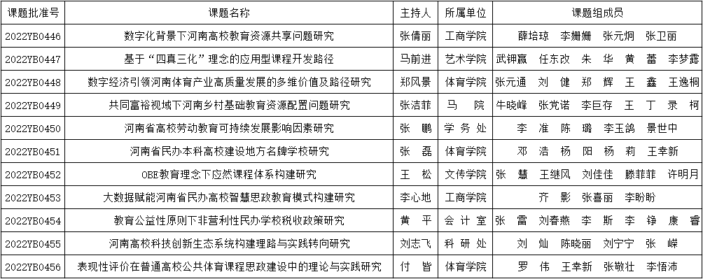 根据河南省教育厅《关于公布河南省教育科学规划2022年度一般课题立项名单的通知》(教教科〔2022〕206号),beat36511项河南省教育科学规划2022年度一般课题获批立项。望各课题组深入调查,务实研究,按时保质做好结项工作。