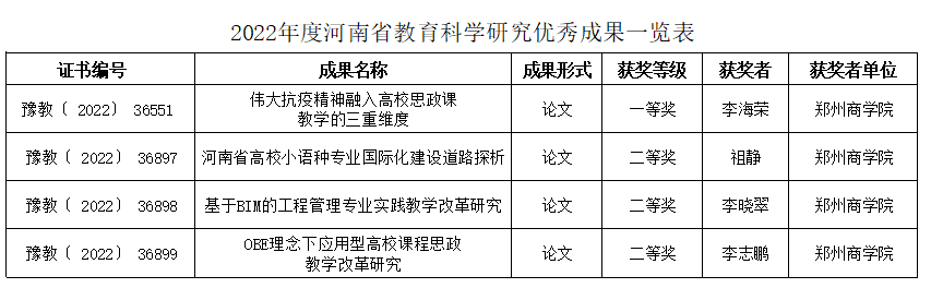 根据《河南省教育厅办公室关于开展2022年度河南省教育科学研究优秀成果评选工作的通知》(教办教科〔2022〕172号),beat3654项成果获奖,其中一等奖1,二等奖3项,现予公布。望各课题组再接再厉,不断创造新佳绩!