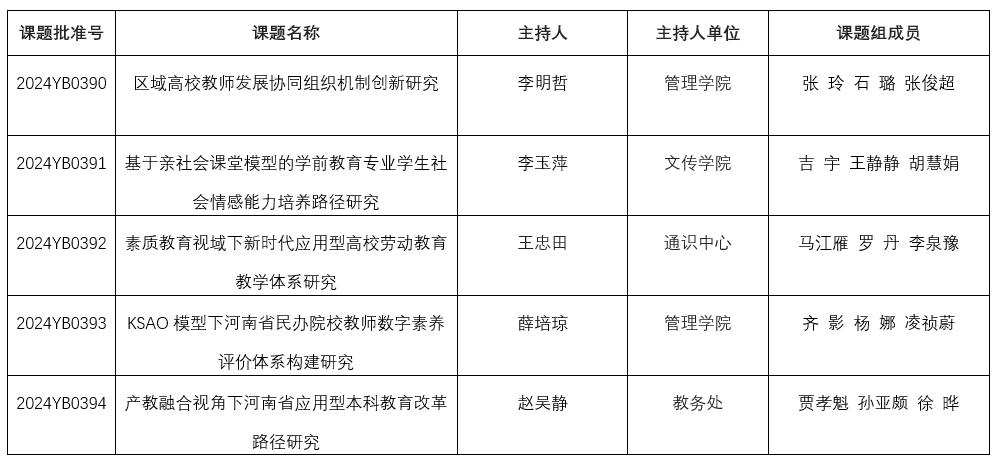 根据河南省教育厅办公室《关于公布河南省教育科学规划2024年度一般课题立项名单的通知》(教办教科〔2024〕165号)文件,beat3655项河南省教育科学规划2024年度一般课题获批立项。请各负责人认真组织实施,在规定时间内保质保量完成课题研究。