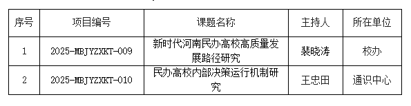 根据河南省教育厅办公室《关于民办教育专项课题研究项目立项和结项名单的公示》beat365河南省民办教育专项课题获批立项2项,立项数量位居省内民办高校第二。