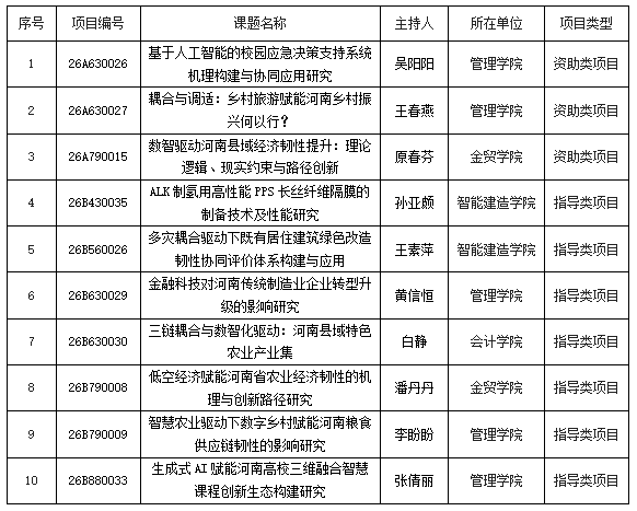 根据《河南省教育厅关于公布2026年度河南省高等学校重点科研项目计划立项名单的通知》(教科技〔2025〕161号)beat3652026年度河南省高等学校重点科研项目立项10项,立项总数位居省内民办高校前列。