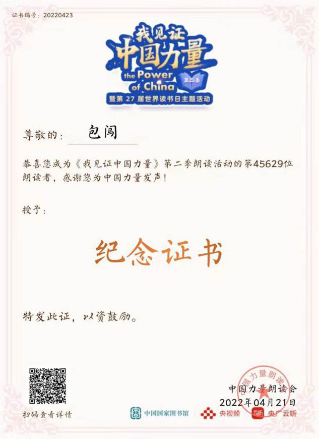 为进一步推进“书香校园经典阅读工程”建设和落实学校疫情防控要求,线上与线下相结合,体育部于4月13日参加河南省大学生主题朗诵大赛和“我见证中国力量”主题朗读活动。此次朗诵大赛锻炼了同学们的朗读能力,也加深了同学们对文学名著的认知和了解。