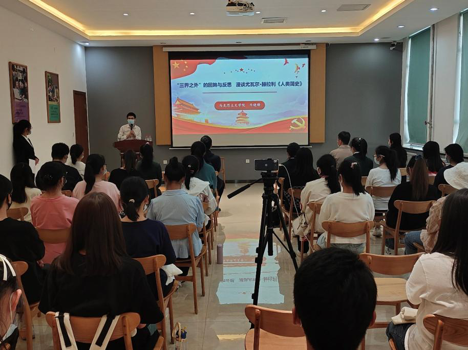 4月20日,图书馆和工商管理学院联合举办“郑商百家谈”第十讲读书分享会。活动采用线上线下相结合的形式开展,工商管理学院党委宋森书记、团委董文浩书记,书香校园阅读经典工程负责小组指导老师出席了此次活动。牛晓锋教授围绕认知革命、农业革命和科技革命生动形象地解读了人类发展的悠久历史,让同学们更加深入地了解《人类简史》。