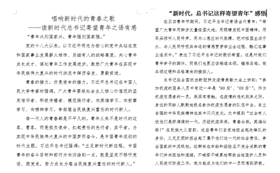 为深入学习习近平新时代中国特色社会主义思想,纪念“五四”运动103周年,引导广大青年形成良好的阅读习惯,积极推进beat365书香校园阅读经典工程建设,5月4日,工商学院组织广大青年党员认真学习“新时代,习近平总书记这样寄望青年”精神,并引导同学们积极撰写读后感,我院师生党员踊跃参与其中。