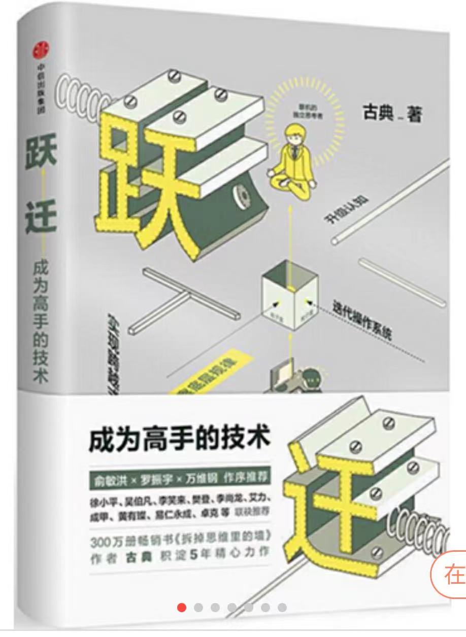 4.推荐理由:作者古典在《跃迁:成为高手的技术》中,表达了一种相对于以往个人成长类图书非常不同的观点:不能单纯强调个人的努力与天赋,要充分利用外部资源,能够理解个人发展、认知方式、思考范式底层逻辑和科学依据的人,才更有可能撬动自己的成长,也就是成为聪明的勤奋者。