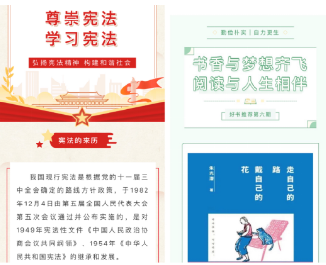 为丰富同学们的阅读生活,建工学院在“好书推荐”特色系列活动的基础上,开展“开学季——9月阅读书目推荐”活动,组织学生共读并分享,引导学生养成爱读书的习惯。同时,在学院微信公众号持续开展法律知识学习栏,引导学生读书的同时,增强法治观念、提升法治素养。